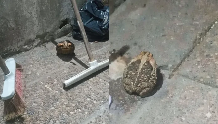De acuerdo a las fotos compartidas, el animal sería de la especia Rhinella marina, comúnmente conocida también como “Sapo de Caña”. Se trata de un especimen grande, de color pardo amarillo, mezclado con verde.