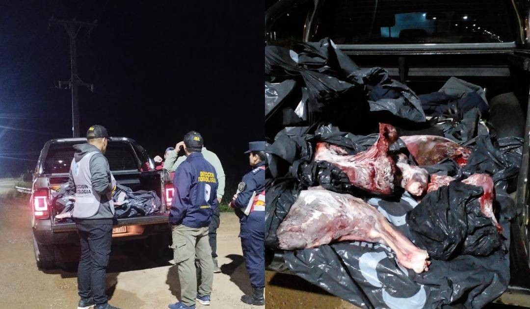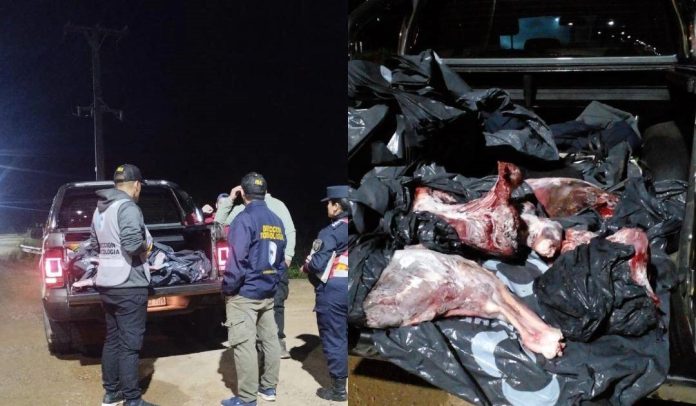 Durante el procedimiento se interceptó una camioneta Volkswagen Amarok, en la que se trasladaban dos hombres de 44 y 38 años, y se constató el transporte de varias bolsas con cortes cárnicos y una conservadora con pescados.