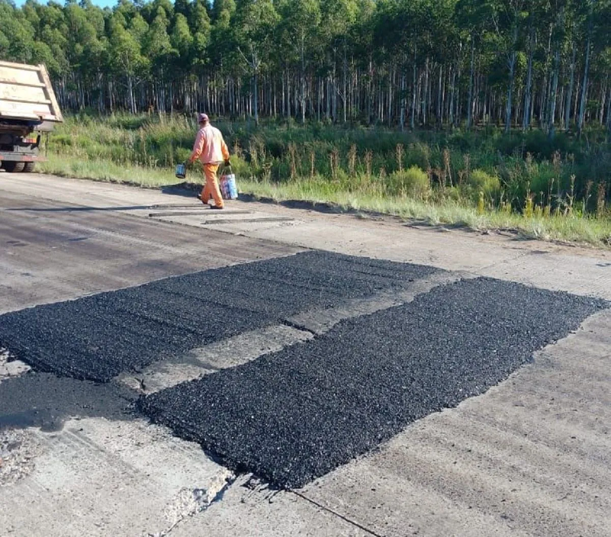En la RN 14, tramo Colón-Ubajay, se está llevando adelante bacheo preventivo con mezcla asfáltica sobre calzada de hormigón. Las autoridades recuerdan a los conductores respetar la señalización en las zonas de obra.