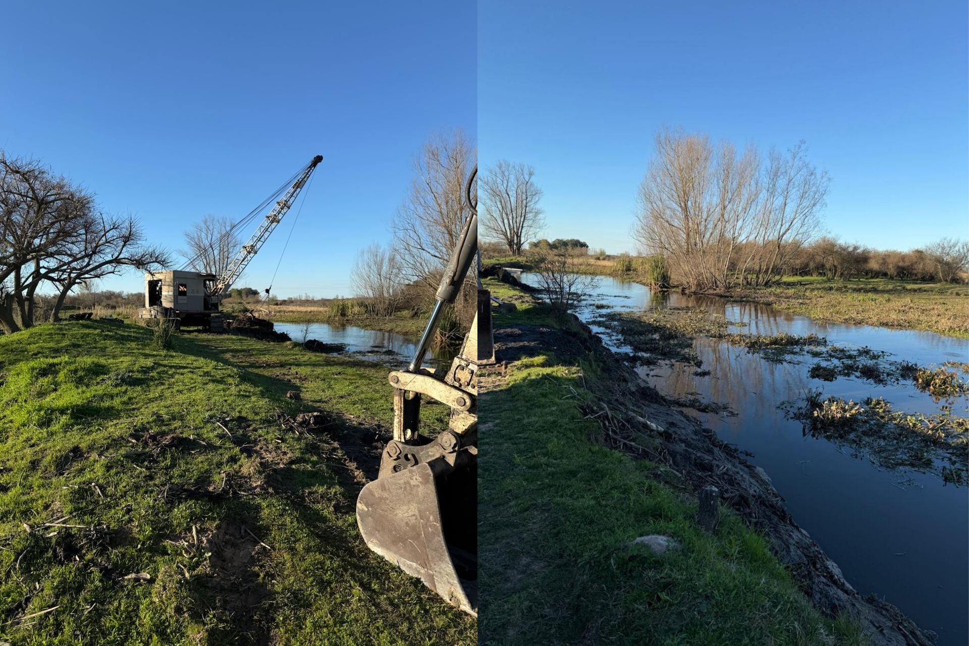 Este tipo de intervenciones se realiza con una dragalina, un equipo especializado en operar en ambientes de humedales y cursos de difícil acceso, lo que permite un trabajo eficiente y de cuidado con el entorno. Actualmente, la obra se encuentra en ejecución y próxima a finalizar.
