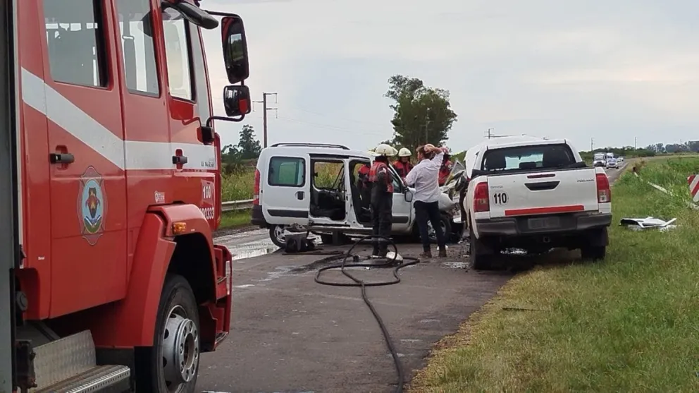 Una Toyota Hilux y un utilitario Renault Kangoo impactaron de frente en momentos en que llovía sobre la ruta.